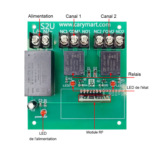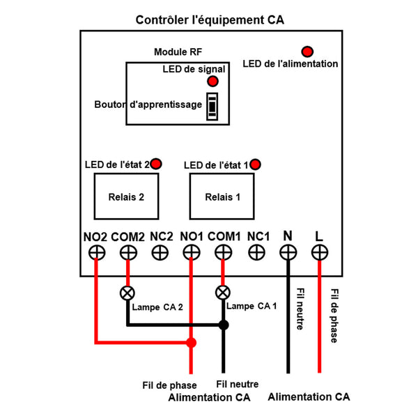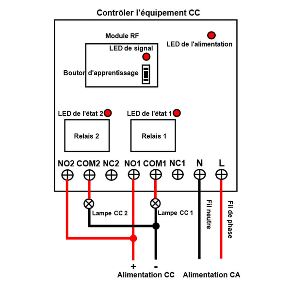 Sortie Relais: Ce récepteur est le sortie relais sec, il peut être utilisé pour contrôler à la fois les équipements CC et AC.