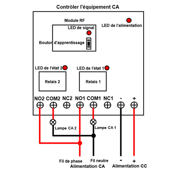 Sortie Relais: Ce récepteur est le sortie relais sec, il peut être utilisé pour contrôler à la fois les équipements CC et AC.