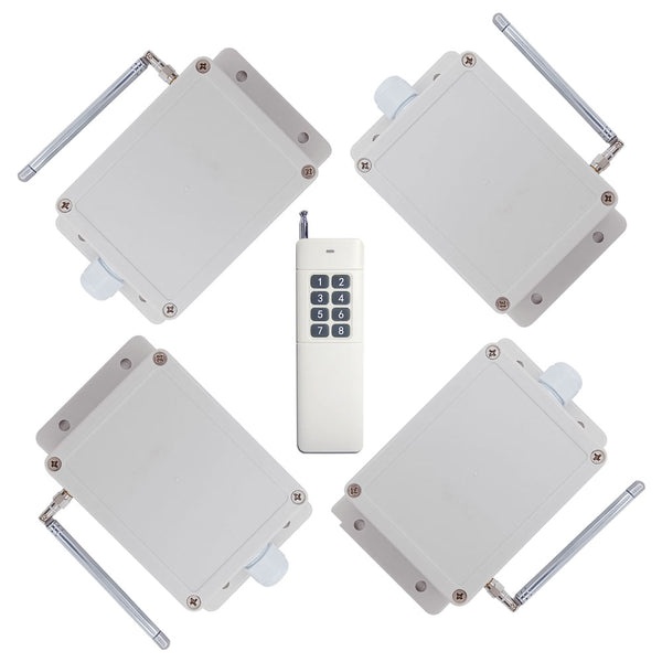 Il s'agit d'un système à un émetteur et plusieurs récepteurs avec sortie relais. Il comprend quatre récepteurs S2U-AC-ANT3 et un émetteur CV-8. Il peut être utilisé dans tous les types d'automatisation industrielle, agriculture, entreprise, maison, usine, ferme, garage, véhicule, bateau, véhicule aérien, etc. Il peut contrôler à distance différents équipements CA ou CC sur terre, eau et air, tels que les lumières, les portes, les fenêtres, les lampes, les prises, les serrures, les sirènes, les radiateurs, les moteurs, les ventilateurs, les treuils, les rideaux, les stores, les actionneurs linéaires, les électrovannes électriques et les systèmes d'alarme de sécurité. Les applications sont infinies.