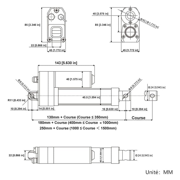 Longueur de câble pour le vérin électrique normal : 1000±10%mm, la longueur peut également être personnalisée selon vos besoins spécifiques