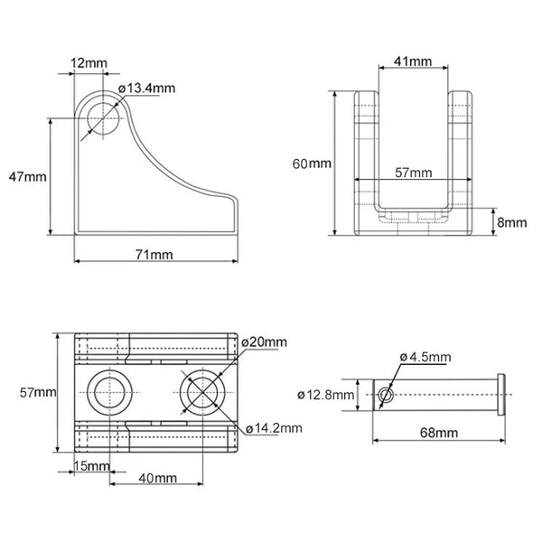 Chaque verin électrique nécessiterait deux supports de montage, un pour fixer la tête du vérin électrique et un autre pour fixer le bas du vérin électrique.