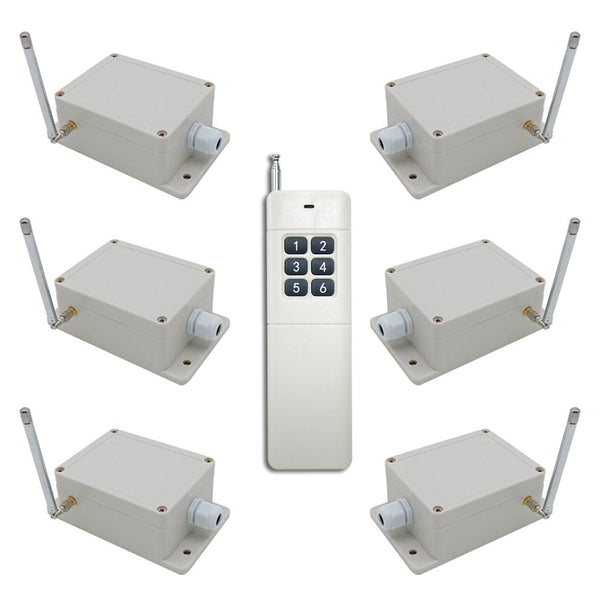 Il s'agit d'un système à un émetteur et plusieurs récepteurs avec sortie relais. Il comprend six récepteurs S1U-AC-ANT3 et un émetteur CV-6 / CB-6. Il peut être utilisé dans tous les types d'automatisation industrielle, agriculture, entreprise, maison, usine, ferme, garage, véhicule, bateau, véhicule aérien, etc. Il peut contrôler à distance différents équipements CA ou CC sur terre, eau et air, tels que les lumières, les portes, les fenêtres, les lampes, les prises, les serrures, les sirènes, les radiateurs, les moteurs, les ventilateurs, les électrovannes électriques et les systèmes d'alarme de sécurité. Les applications sont infinies.
