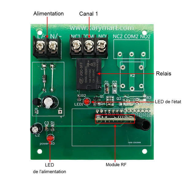 Sortie Relais: Ce récepteur est le sortie relais sec, il peut être utilisé pour contrôler à la fois les équipements CC et AC.